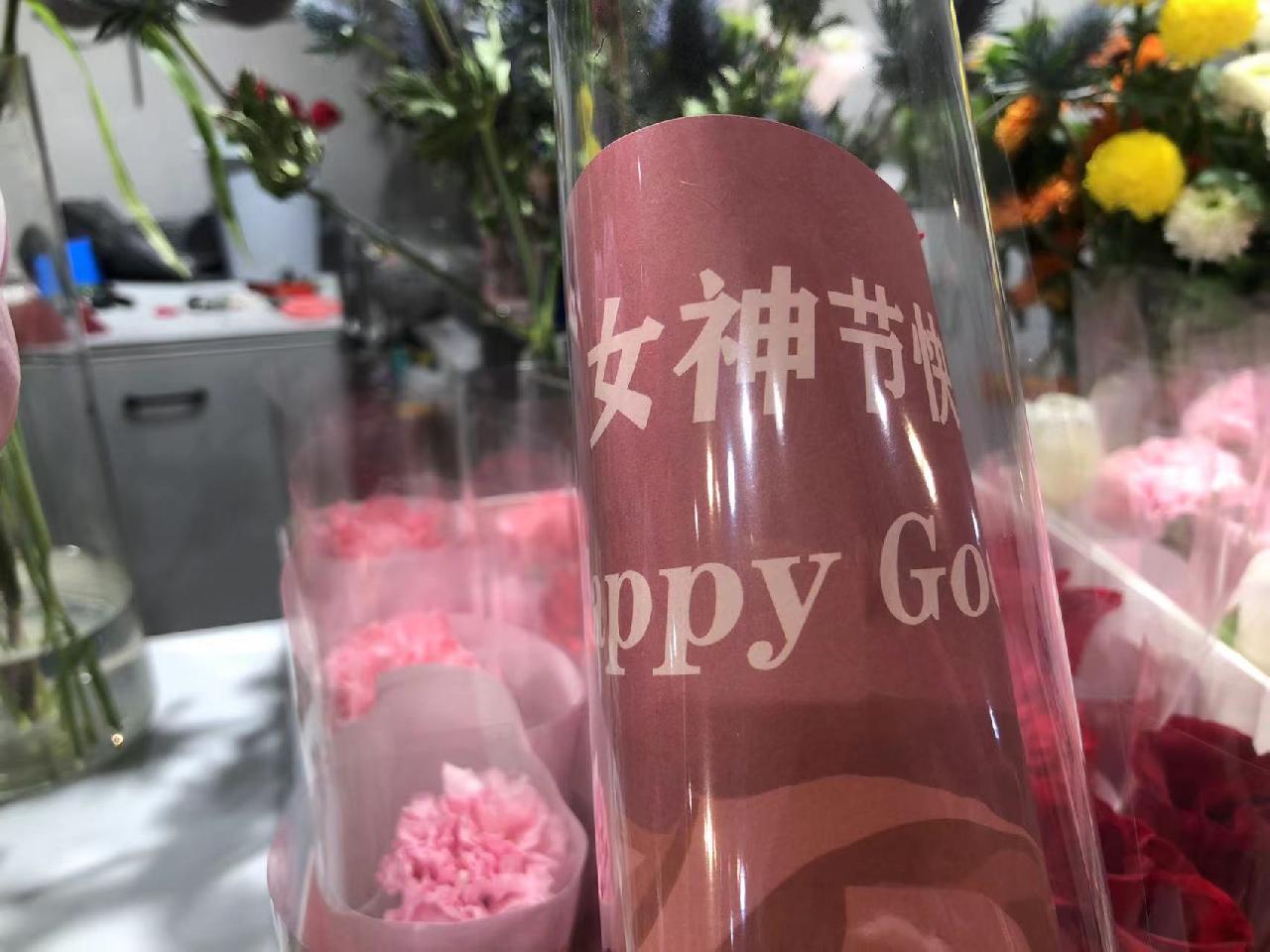 在花市7号门159号店铺,老板娘王菊正忙着处理“三八”节订单,“妇女节一般是送单支或者小型花束、花篮的居多,像我们单支郁金香订单有七八百单,加康乃馨和玫瑰的订单有三四百单,是比情人节订单要多。”