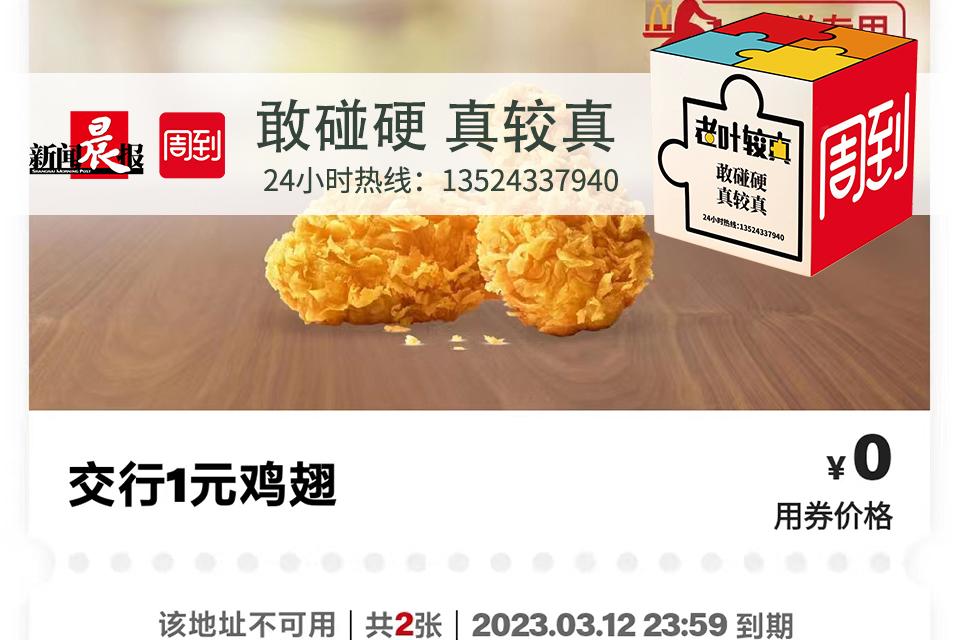 交通银行方面还反馈说,客户提到的麦当劳南丰城店,属于非麦当劳与交行合作活动门店(不在那13家可使用门店清单内),所以确实无法使用这张券。至于张女士说,最近这家门店也能配送了,银行还需进一步了解。