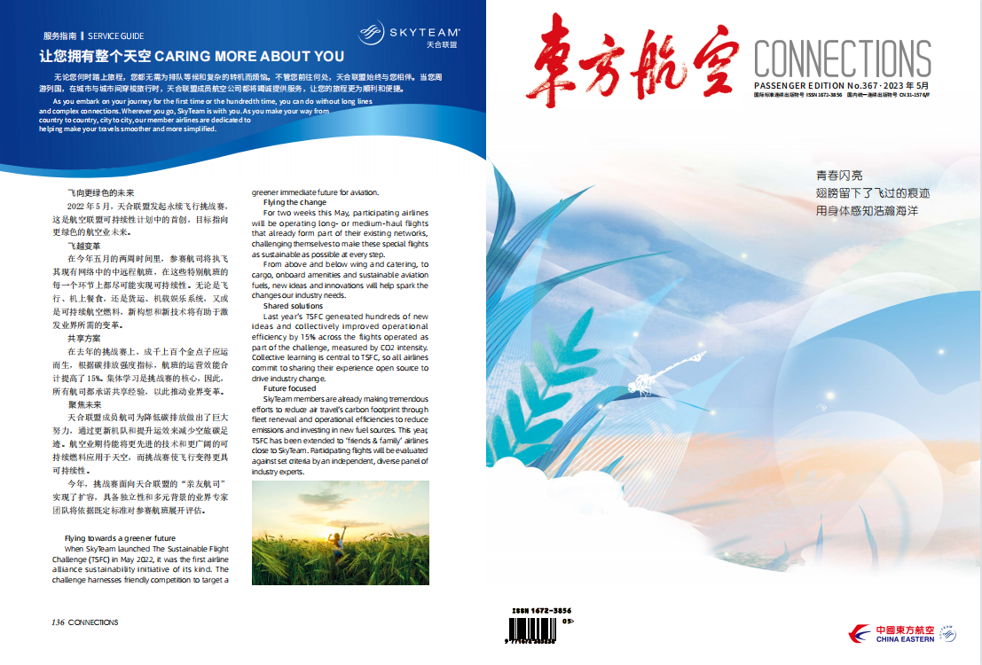 5月初恰逢五四青年节,《东方航空》杂志为此在开篇策划了“青春闪亮”为主题的专题内容,讲述了7位行业代表的故事。他们当中有飞行员、乘务员和机务等民航界人士,也有大提琴演奏家、舞蹈家、歌唱家、评弹演员等文艺舞台上的翘楚。他们在自己的专业领域取得过不菲的成绩,展现着各自的青春风采。