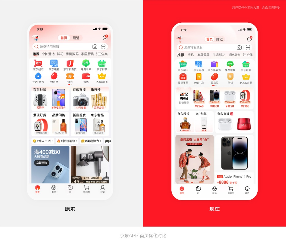 同时,京东百亿补贴在京东APP首页的入口也将得到进一步强化,并可展示补贴金额,让用户直接了解到具体的补贴力度;而且京东直播将在京东APP首页实时展示直播画面和低价直播间入口,向用户展现超低价的商品。