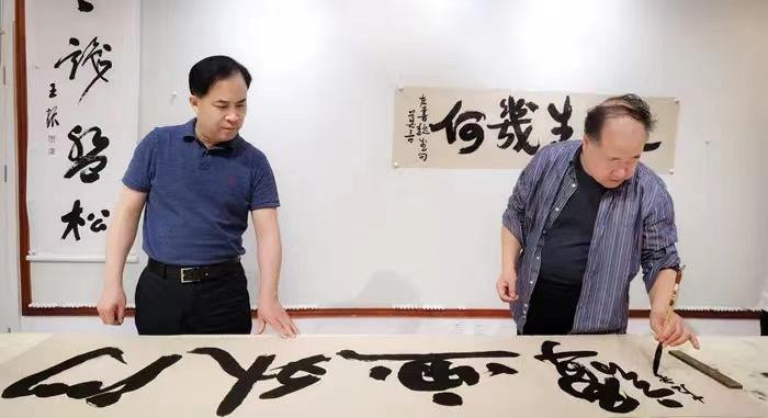 2019年,莫言、王振在日本参观颜真卿行书《祭侄文稿》,感触颇多,归国后莫言创作七言长诗,两人还携手创办了“两块砖墨讯”微信公众号,意为抛砖引玉,引来大家评说。