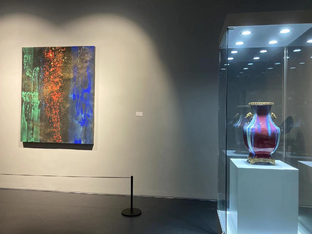 藤村真抽象绘画对话古瓷色韵,通过抽象绘画共鸣着东方意境,在当代抽象和穿越千年时光的瓷器之间,持续进行着一场富有张力、启迪思维的谈话。