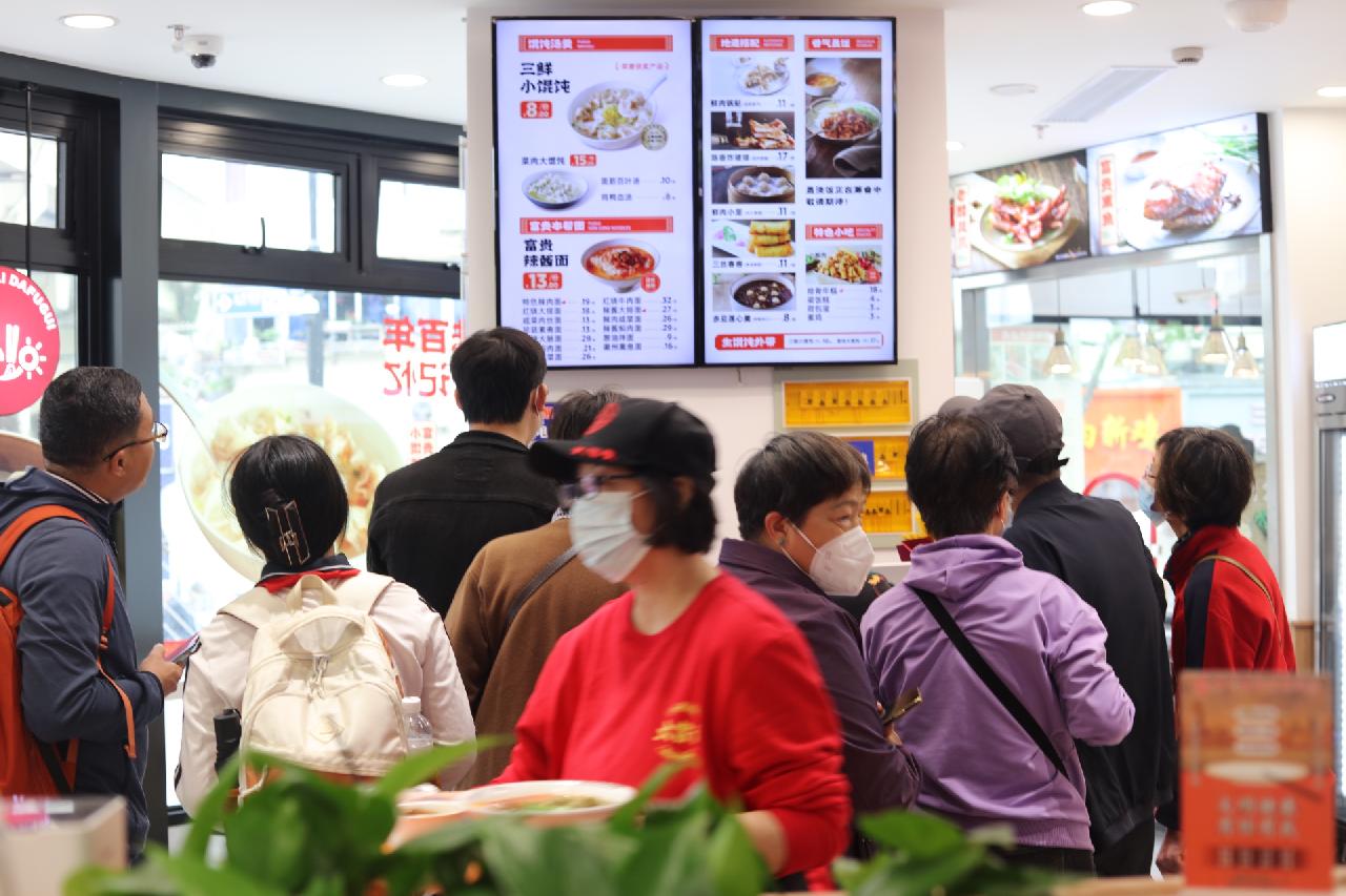 “今朝个辰光哪能就要排队了!”顾长硕(化名)低头看了看表嘀咕着:“这才早上十点三刻不到,此地闹猛唻。”在鲁班路瞿溪路的转弯角,这家门头上挂着“五里桥街道社区食堂”的大富贵(鲁班路店)已经需要排队了。老顾一手攥着卡,一手拿着不锈钢饭盒,融入队伍有序等候点餐。