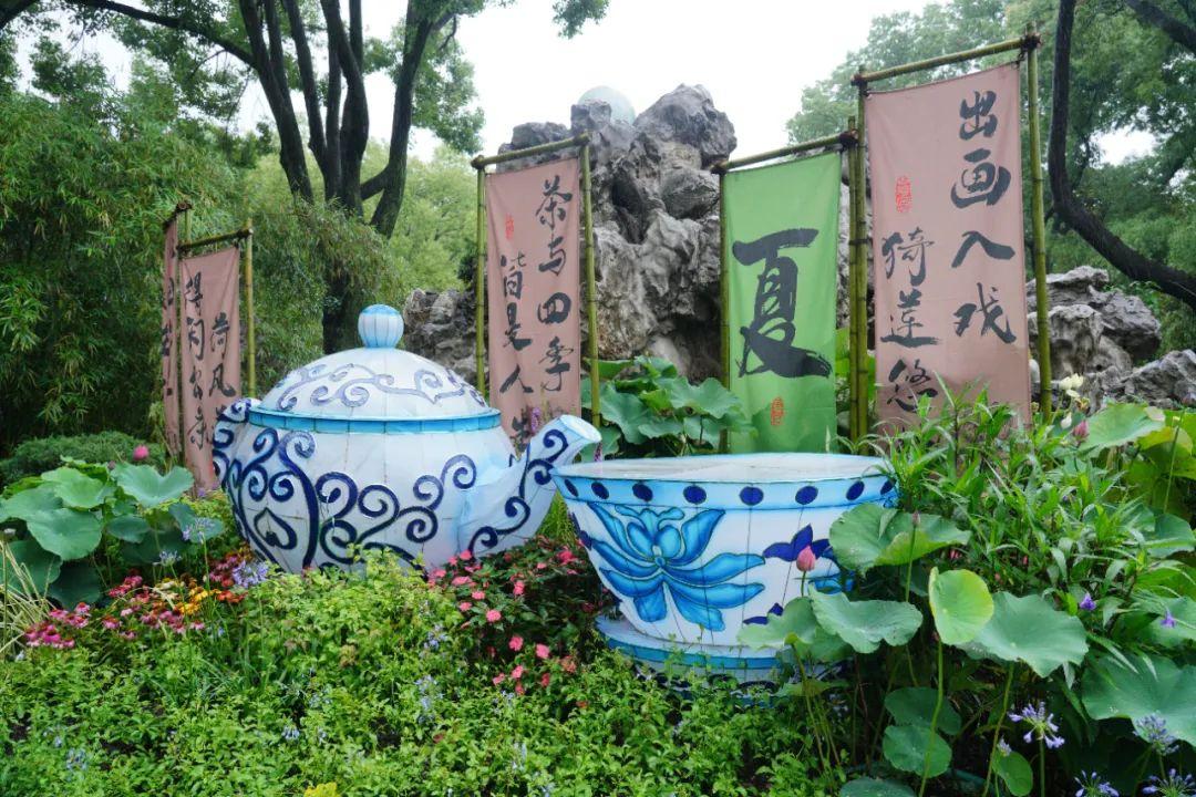 在此次荷花睡莲展的植物组景布置过程中,古猗园将竹编、书法、画扇等非遗元素巧妙地融入其中,展现独有的古典园林艺术特色,为市民游客带来别具一格的赏荷体验。