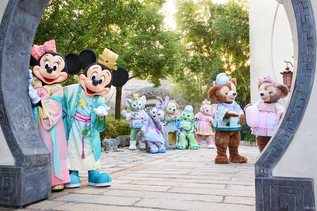 中秋佳节将至,达菲和朋友们将首次在达菲月穿上全新服饰,其设计风格灵感来源于中国传统服饰和经典花卉纹样。米奇和米妮将邀请达菲和朋友们一起,在富有诗意的漫月食府前,带来一场全新的表演“达菲和朋友们的赏月佳会”。