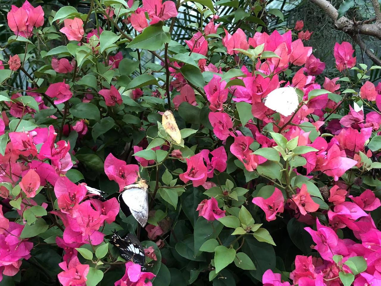 为了达到最佳观赏效果,花园里种植了龙船花、三角梅等多种蜜源植物,使得花园的下、中、上层都能看到蝴蝶翩飞的效果。