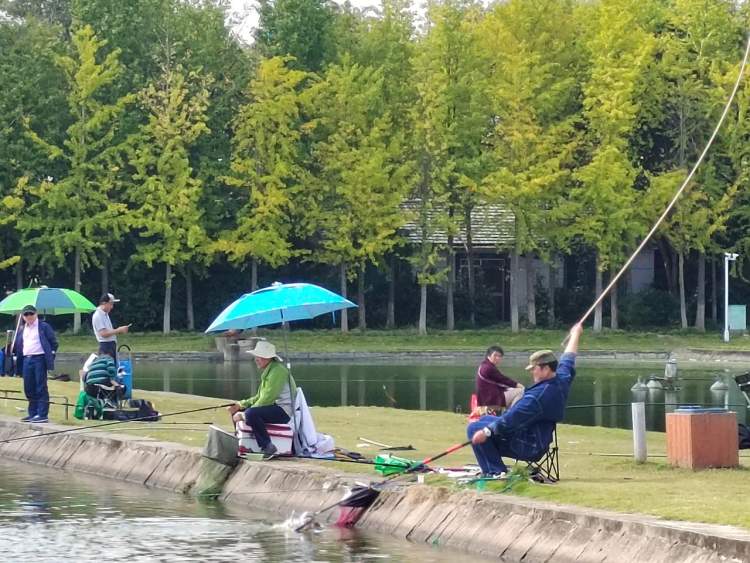 说是比赛,没有一点紧张气氛,老同事多日不见,先寒暄一番。再慢条斯理的打开渔包,整理好渔具,装好渔饵,拉开折叠小椅子,考究的支起遮阳伞,垂钓开始。一时间,渔塘边一片静默,大家都聚精会神的注视着水面,看着浮标。
