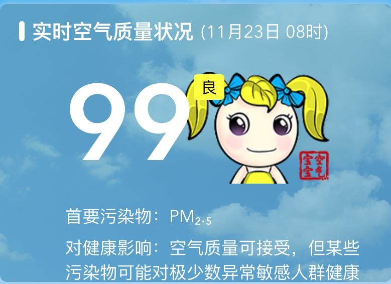 根据预报,今天夜间空气质量转为良,明天为优至良。秋冬季,受北方冷空气输送影响,遇到本地静稳天气时,容易出现空气污染,市民出门注意适当防护。