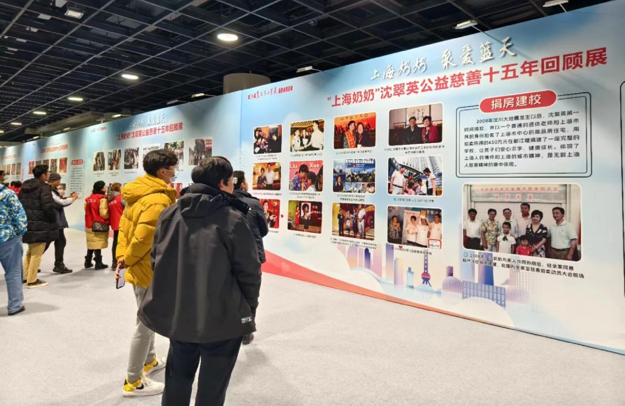 12月19日,“上海奶奶 聚爱蓝天”——“上海奶奶”沈翠英公益慈善十五年回顾展,在位于虹桥路2268号的上海农业展览馆开幕。现场以120幅照片、数千篇资料以及“上海奶奶”参与开发的消费扶贫产品展示为主线,展示了沈奶奶自2008年到2023年的公益之路。