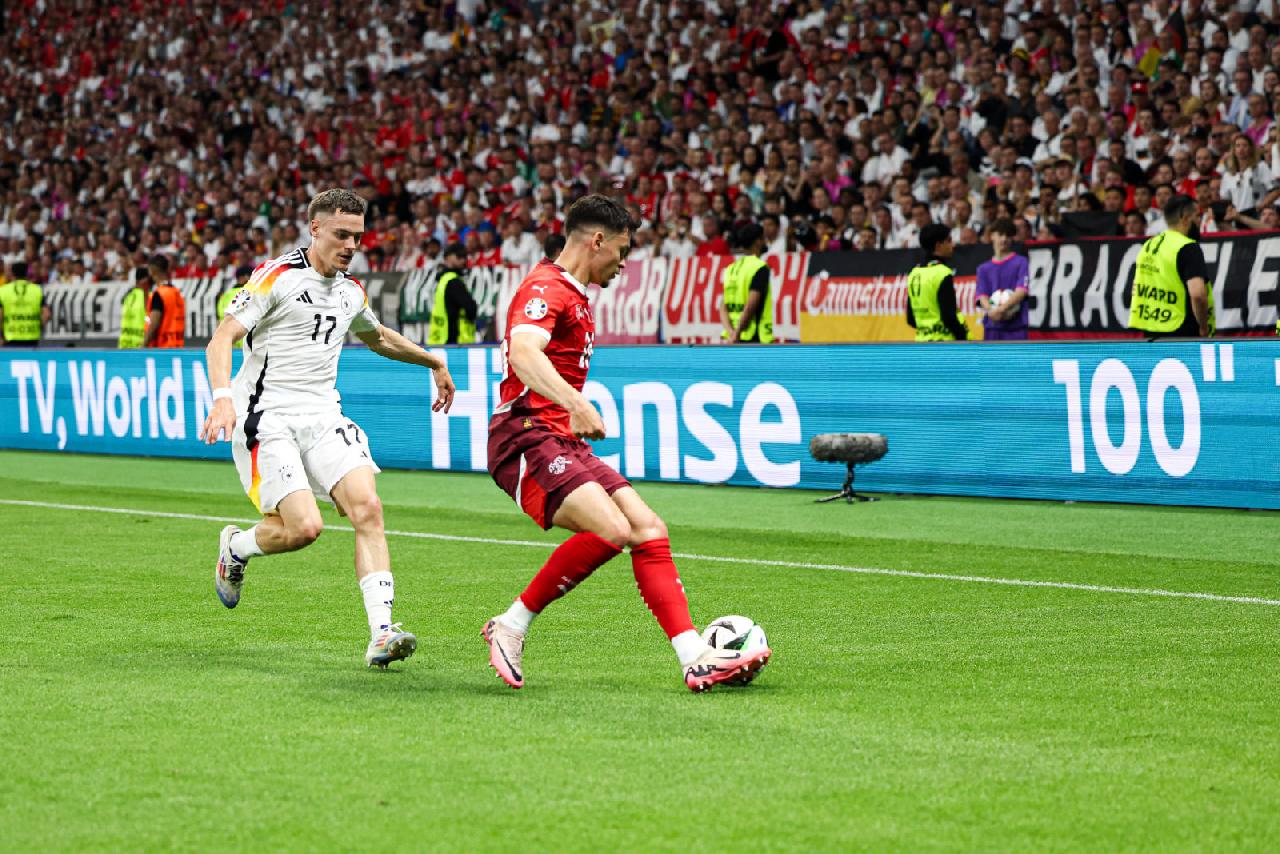 对抗能力强硬的瑞士队给此前两场比赛锋芒毕露的德国队制造了不少麻烦。第28分钟,瑞士队率先破门,在前场打出精妙配合,弗罗伊勒助攻,恩多耶抢点垫射破门,为瑞士队取得领先。