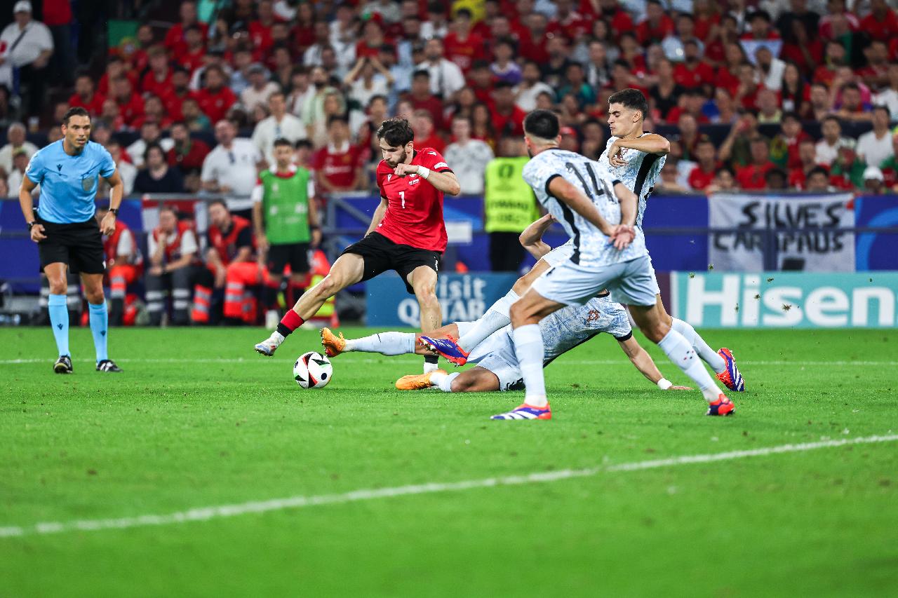 葡萄牙与格鲁吉亚的比赛中,开场93秒,克瓦拉茨赫利亚闪击破门。安东尼奥-席尔瓦回传失误,米考塔泽斜塞禁区,克瓦拉茨赫利亚单刀推射入网,格鲁吉亚1-0领先。