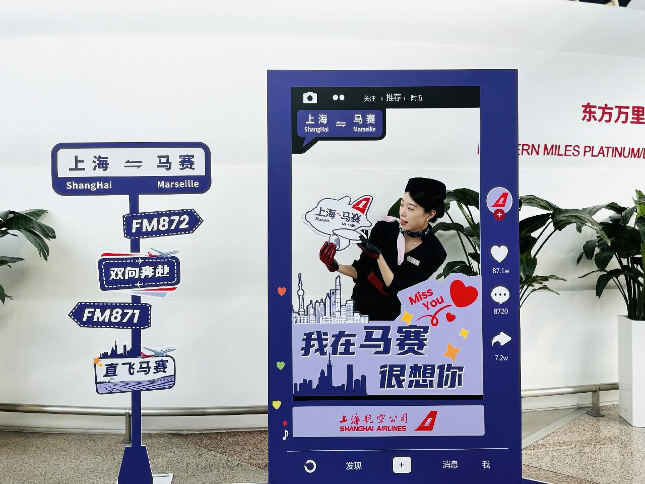 剪彩仪式、赠送上航飞机模型,以及与东上航相关领导、机组人员共同合影庆祝上海-马赛首航成功,一连串简短热情的仪式之后,也预示着上海马赛航线正式开启了每周三班的友城直航。