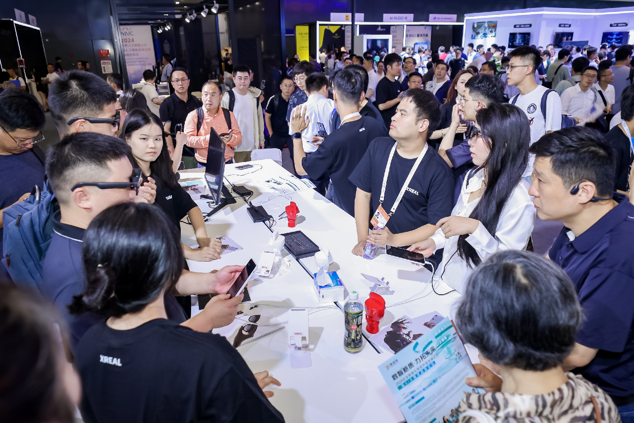 2024世界人工智能大会期间,从人人可有的微信小程序到轻量版的AR眼镜,再至沉浸感更深刻的MR眼镜,一场空间计算的盛宴也呈现出来。