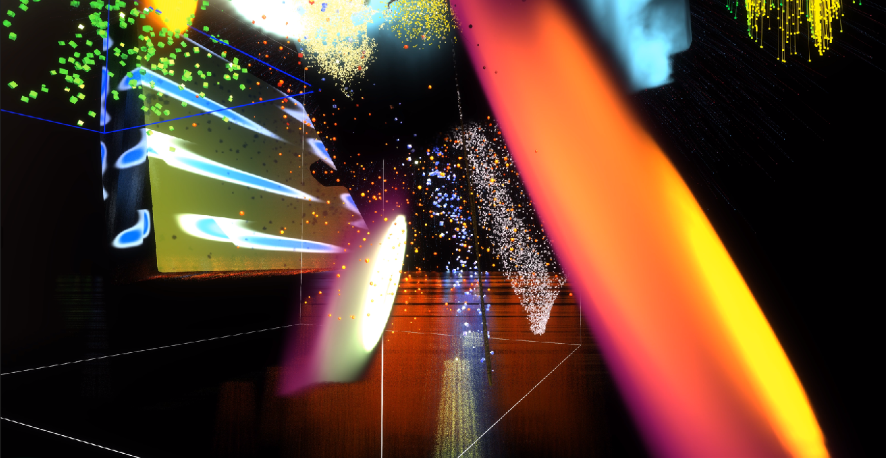 此次展览的新媒体作品《Mix Space》,这是一件标志性的虚拟创作作品,也是我在虚拟创作中的一个突破。在这件作品中,我深入理解了意识与空间、空间与色彩、色彩与音乐节奏之间的关系。这些都得益于新媒体程序化软件的Notch VFX和TouchDesigner所带来的便利。