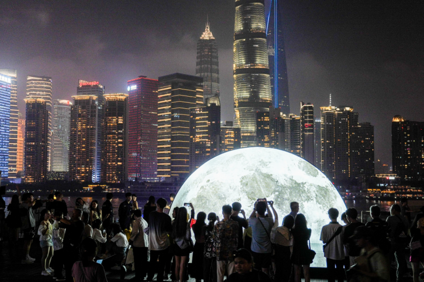 在豫园中心广场拥抱“月印万川”,在九曲桥上感受“十二沐月”,在凝晖路与流星擦肩,在黄金广场“举勺挖金月”,在BFC心动露台打卡外滩超级月亮,在北区广场与巨型弯月互动,在BFC找到秋日穿搭的“答案之书”……