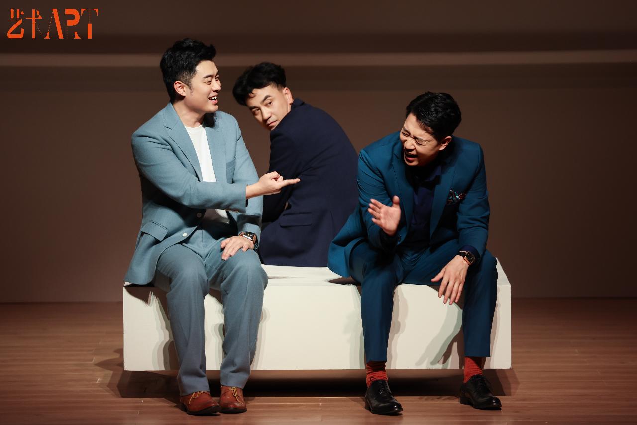 4月3日晚,另一组全新组合:陈赫(饰 马克)、谢帅(饰 塞尔吉)、张瑞涵(饰 伊万)也接棒登场,为这部经典作品注入新的解读与活力。首次出演该剧的陈赫将马克的强势与不安刻画得真实可感;谢帅在不同对手的碰撞中,再度展现出塞尔吉的复杂情感层次;同样首次出演的张瑞涵则通过精准的节奏把控与细腻的肢体表达,将伊万的左右为难演绎得淋漓尽致。