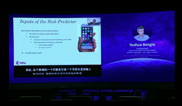 本届人工智能大会首次邀请到深度学习三巨头之一,2018年度图灵奖得主蒙特利尔大学计算机学教授约书亚·本希奥。在今天开幕式的主题演讲环节中,约书亚·本希奥通过视频方式发表了《机器学习赋能智能手机预测新冠疫情传染性风险》的主题演讲,谈到了基于智能手机的传染性风险。