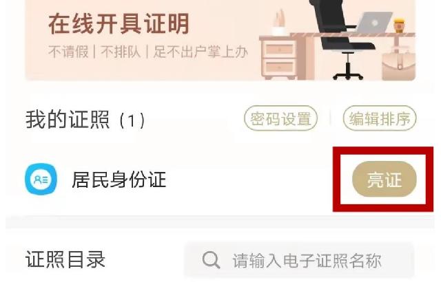 ①打开“随申办APP”,点击“亮证”按钮。