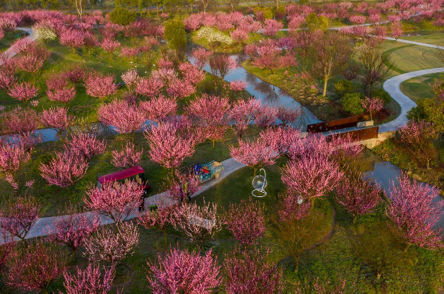 梅园核心区植有精品梅树1万余株,涵盖宫粉、朱砂、绿萼、江梅、龙游、垂枝、杏梅、美人梅等八大类,早、中、晚与白、粉、红色花60多个品种。最佳赏梅期自2月上旬至3月中旬。