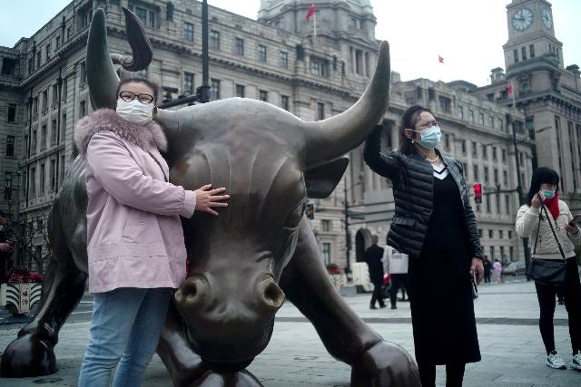农历牛年大年初一,不少市民和游客来到外滩金牛广场与外滩金融牛合影,打卡留念。