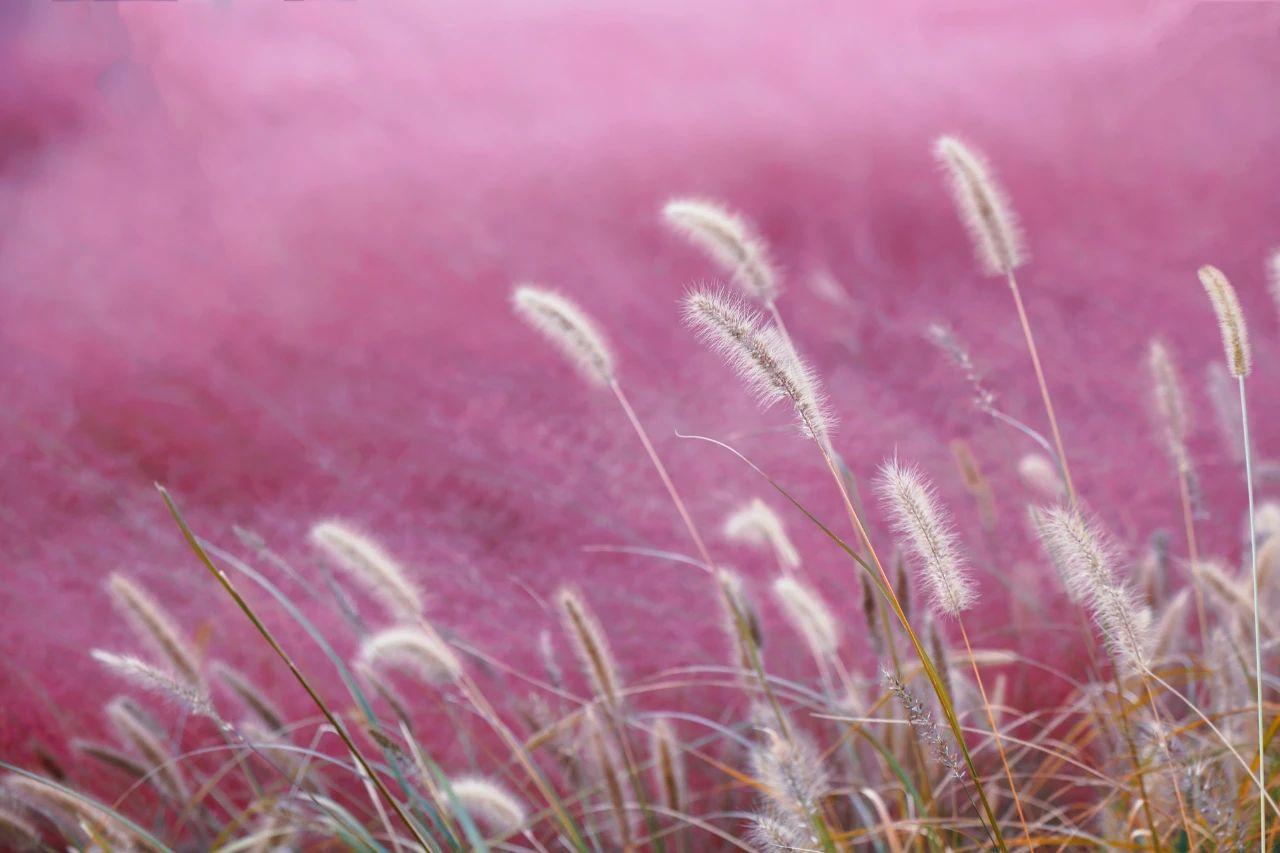 粉黛乱子草属于多年生暖季型草本植物,原产于北美大草原,后作为观赏草引进我国,并逐渐走红。粉黛之所以会出现梦幻的粉色,是因为其草籽为粉色。叶和花序会随着季节变色,花序秋季初生时为粉红色,到冬季逐渐转为黄色。