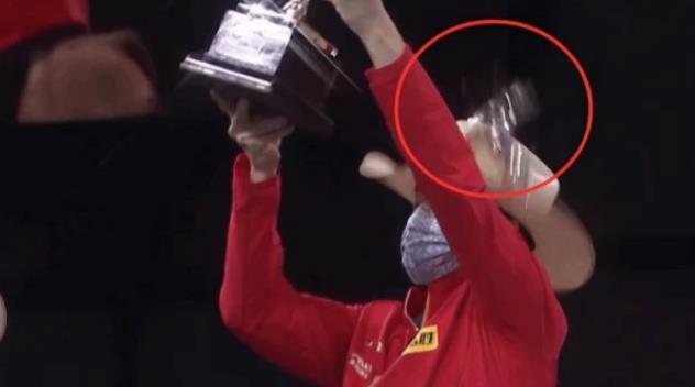 而重新盖好奖杯盖子后的樊振东,再也不敢倾斜举起奖杯了。