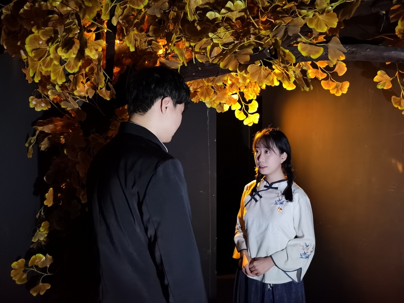 做了一年半NPC,张靖雯也学会了从玩家的反馈中了解他们的喜好:表现欲强的玩家,会在她参演的密室剧目《谋玉》中和她搭戏,她就和他们多聊聊故事发生背景民国时的事;有些玩家偏爱研究密室机械设备,游戏结束后复盘时,自己就给他们多解释游戏中暗藏的机关;初中生玩家多半喜欢热闹,想办法逗笑他们就可以很开心……