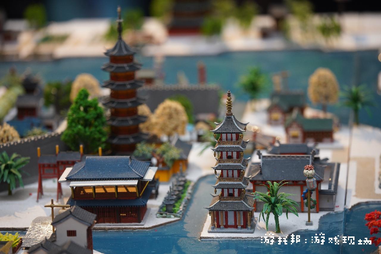 从应天府、徽州府、苏州府、杭州府最后到松江府,从八脚牌楼到断桥残雪,从柳浪闻莺到豫园九曲桥再到城隍庙,微缩景观模型都从细节处一一呈现,观众可以清晰地看到明代时期江南古镇建筑的制式和传统布局,也可以感受到江南古镇各自的奇观,仿若江南古镇大观。