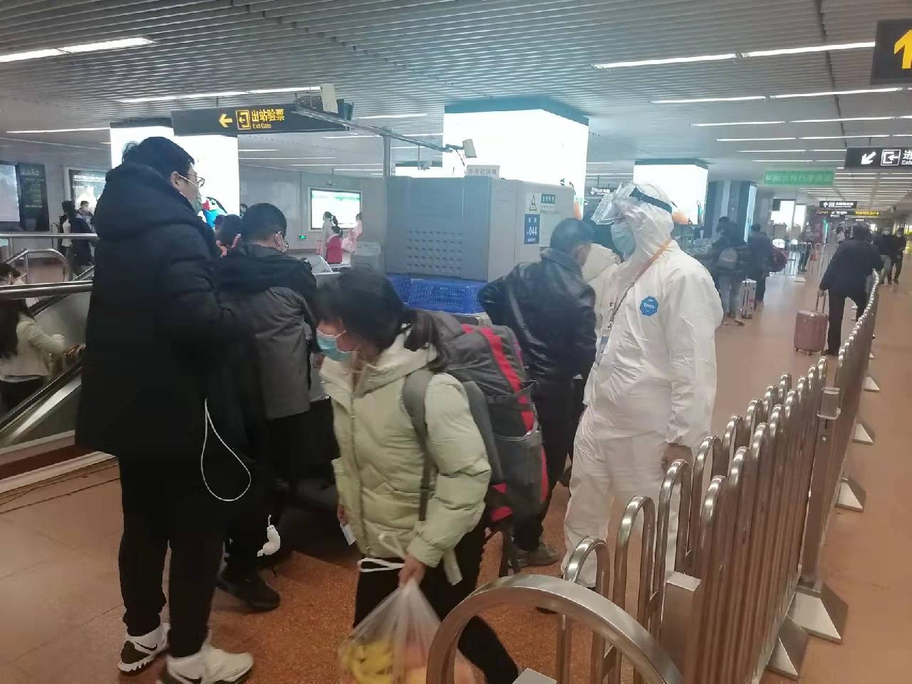 车站客流较多,疫情防控也是重中之重。为保障大家的安全出行,车站对测温设备进行全面调试保养,确保防疫物资储备充足;值班站长与驻站民警,每日对安检人员着装及作业规范进行督导,严格落实“进站两个必须”(测温及戴好口罩);车站各岗位的工作人员也加强了责任区内的巡视工作,及时提醒乘客规范佩戴口罩。