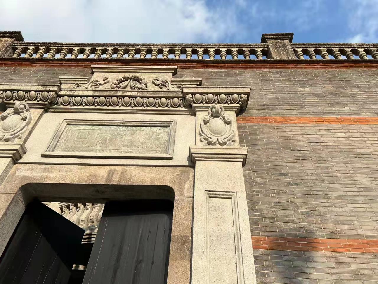 这是一座非典型石库门建筑,既有6米多高的女儿墙,墙上有一圈石库门代表性的红砖,又有少见的8根罗马柱和西式阳台,本身就是海派文化东西融合的见证。