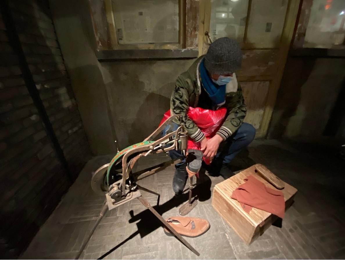 上海北外滩来福士卖白兰花的婆婆吓到不少人了,猜猜下图这位修鞋爷爷是真人假人?