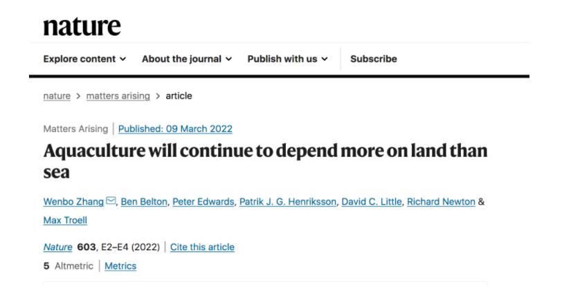 据悉,该研究是张文博与与研究伙伴于2021年9月15日在《自然》杂志封面发表的“蓝色食品环境表现”研究论文的系列研究成果之一。这一系列文章的发表也标志着上海海洋大学水产学科建设中研究领域的重要突破。
