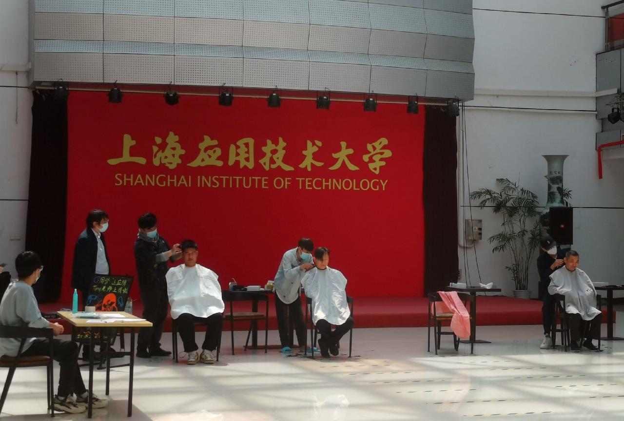 3月16日,上海应用技术大学大学生活动中心内的理发店,学校党委学工部部长袁翔老师、材料科学与工程学院郑康生老师是当天的“Tony”老师,他们拿起理发工具的熟练程度媲美专业理发师。