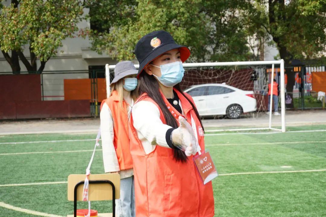 在接到全员核酸检测通知后,14名徐汇校区退役大学生抗疫志愿者又立即赶赴到场,协助医护人员完成对全校的核酸检测任务。