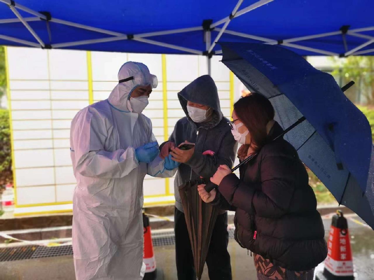 所以后来在挨家挨户敲门时,陈龙会提醒大家先打开健康云登记二维码,特别是有老人小孩的家庭,就提醒家人帮他们先操作截屏,到检测排队现场再提醒他们准备好二维码,这样不仅节约了居民现场咨询排队再采样检测的时间,避免拥挤,也能让现场的医护人员更从容地工作。