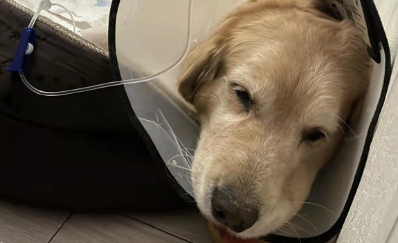 但要给金毛输液,找血管可并不是一件容易的事,好在小区里另有一位宠物诊疗机构的护士助理前来帮忙,5天之后金毛的流血症状已经基本好转。借着3月28日浦东封控前小区曾有几天解封的时间,主人才有机会将金毛送往医院接受手术,目前还处于休养阶段,恢复状况很不错。