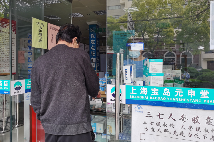 “不进店门”“不超两米线”,这是目前崇明所有药店采取的“无接触购药”措施。今天下午2点多,在城桥镇的元申堂大药房门外,有五六个人在排队买药。店长范金均介绍,最近老年居民常购买的慢性病常备药等均储备充足。