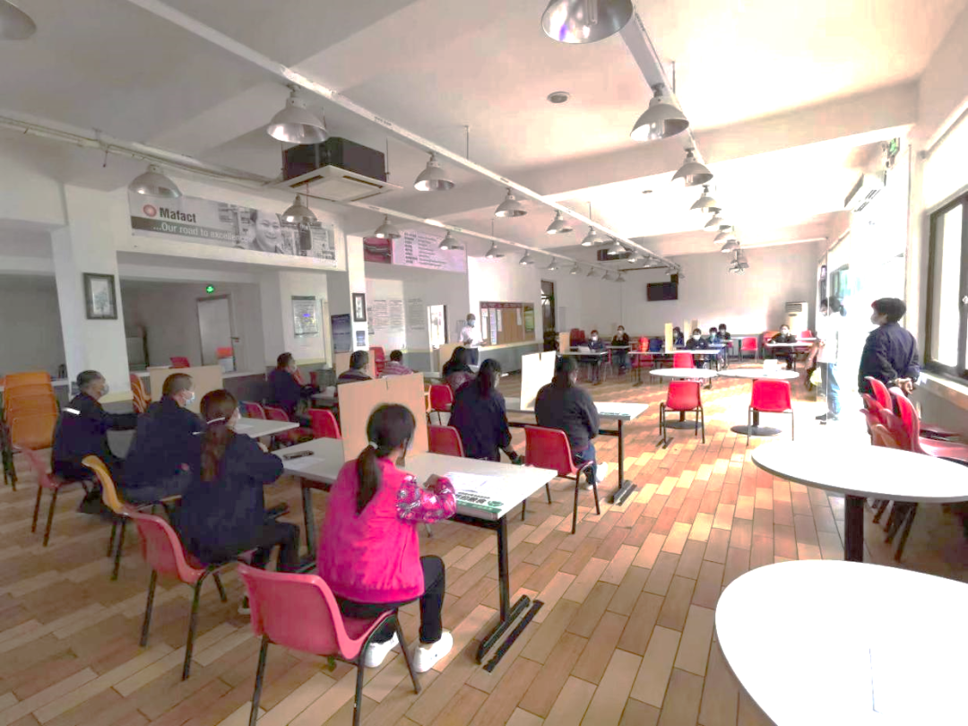 目前,在吕巷工业开发总公司的指导协调下,企业复工人员有179人,复工率约60%。尽管复工人数不多,但为了避免人员交叉感染风险,公司防疫专班会按批次有序组织员工开展入厂培训,让员工熟悉掌握《防疫手册概要》,提前将会议室进行物理阻隔,安排专人分时分批领取客饭,除就餐、洗漱外,要求全体人员每日体温监测、全程戴口罩。同时,部门负责人每晚就寝前进行全员签名核查。