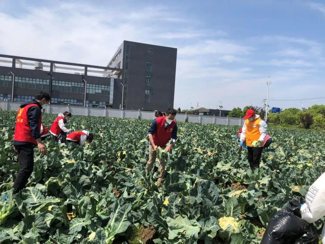 近日,祝桥镇盐仓社区红星村农户杨可兰的花菜地里,出现了一群红色身影——红星村党总支书记郁丹华和盐仓社区党员志愿者们,在争分夺秒地帮助杨可兰收割花菜。