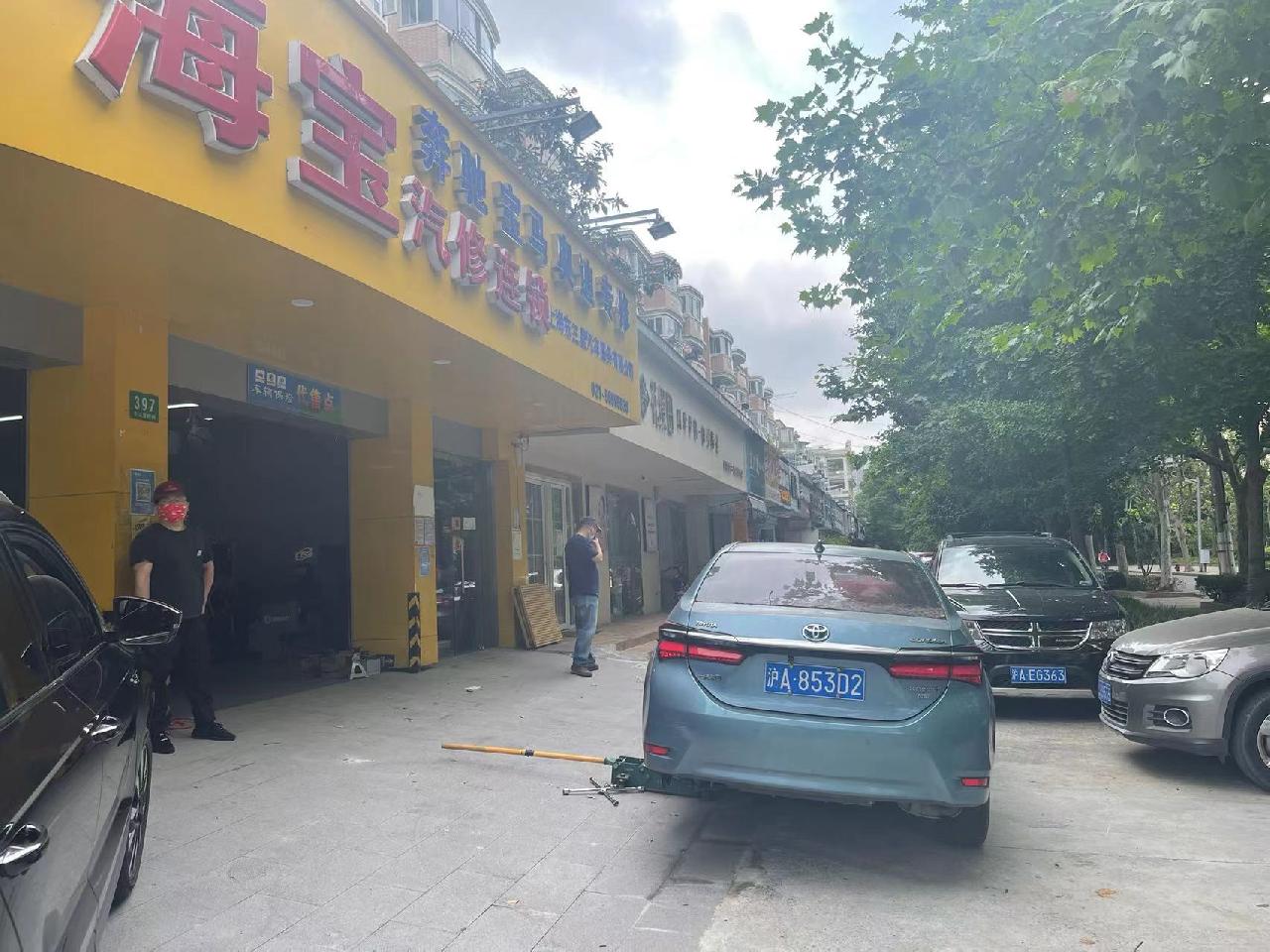 今天一大早,浦东临沂路东三里桥路汽修一条街近十家店铺门口几乎没有插脚的地方,各种车辆停满了车位,有的正在排队洗车,有的轮胎没气了,还有的出现了空调等故障。