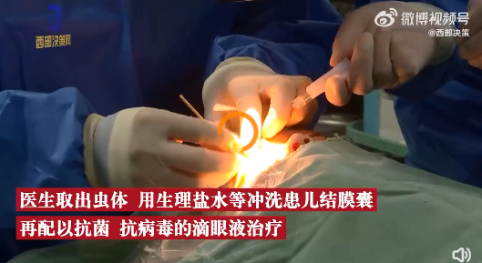 据@西部决策 报道,近日,山东淄博。一位2岁男孩在家中滴眼药水时,被姐姐发现眼中有虫,随后送医。医生检查发现,患儿眼中共有4条白色半透明的小虫,长约1厘米。