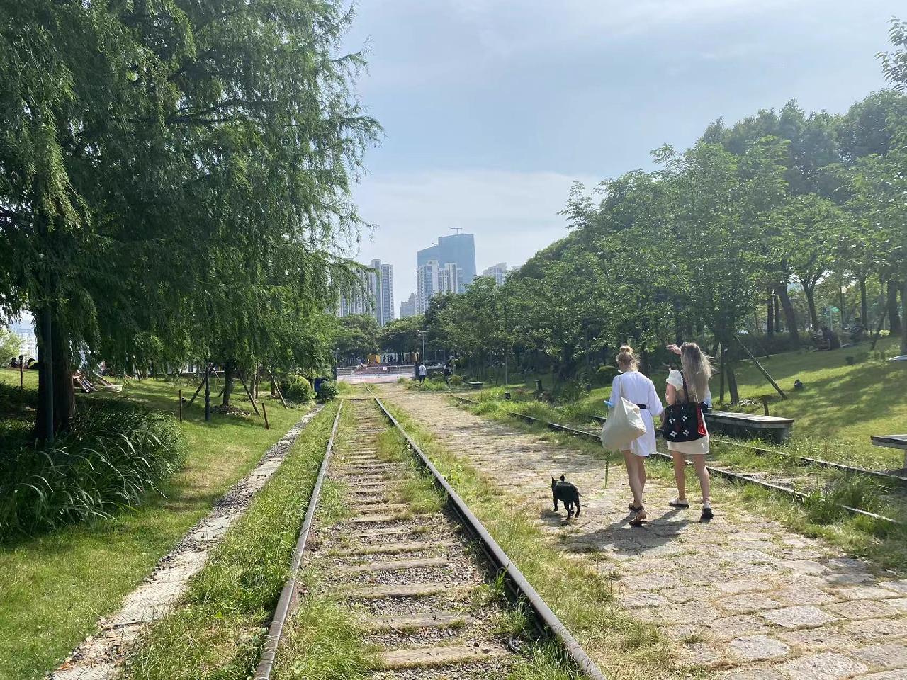 之前很多人打卡拍照的热门铁轨就在一侧,还有都市少见的芦苇丛,既是出片的好场景,也是带上孩子玩玩小探险的地方。
