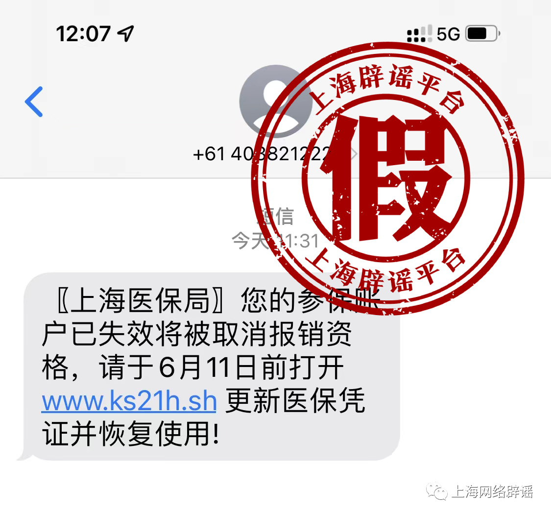对此,上海医疗保障局、上海市医疗保险事业管理中心于6月11日分别通过官方微信公众号“上海医保”“上海医保服务”澄清,该短信并非医保部门发送,有可能涉及欺诈,请市民不要点击短信内容中的网站链接。