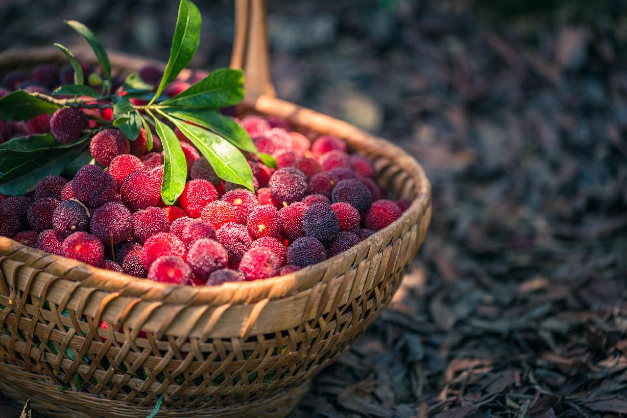 通过一看、二嗅、三触的方法可以成功地选购到好吃又新鲜的杨梅。