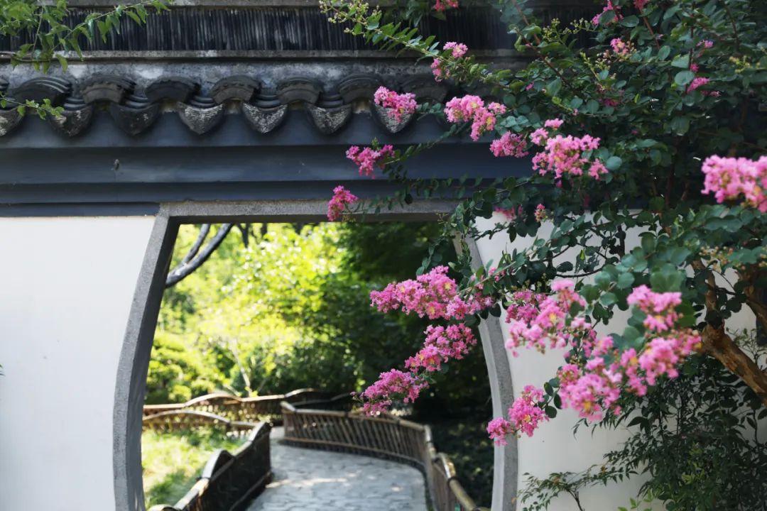 盛夏已至,古猗园内的紫薇花争相绽放。