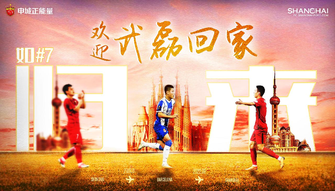 1292天后的2022年8月11日,上海海港俱乐部官方宣布武磊在这个夏天“回家”!