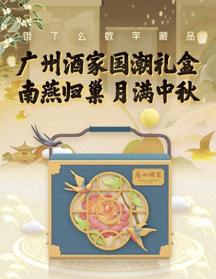 9月1日,上市公司广州酒家集团就宣布联名饿了么,推出“中国首款广式数字月饼”。从示意图上来看,数字月饼外盒包装精致,颇有古典韵味,符合时下年轻人对国风的热衷。