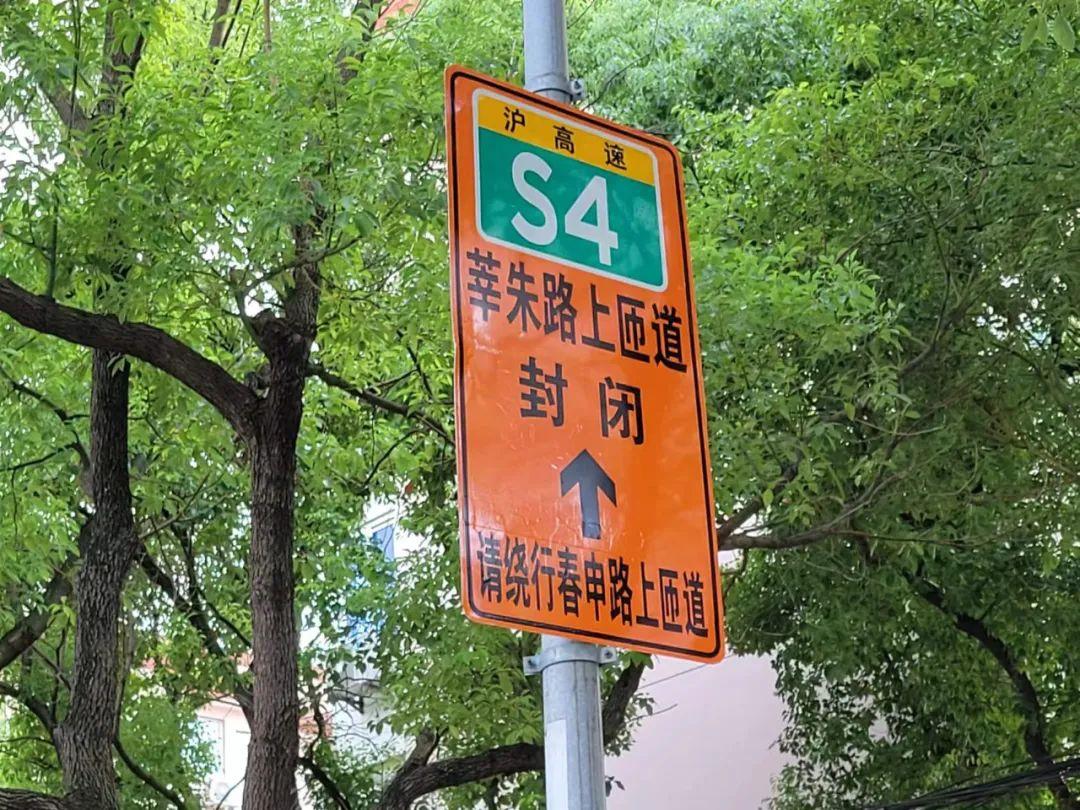 S4沪金高速东侧莘朱路上匝道封闭。莘朱路跨线桥禁止机动车通行:莘朱路跨S4跨线桥禁止机动车双向通行,途经此地的社会车辆和公交725路、闵行12路、闵行25路可沿虹莘路-梅陇西路-莘朱路绕行。