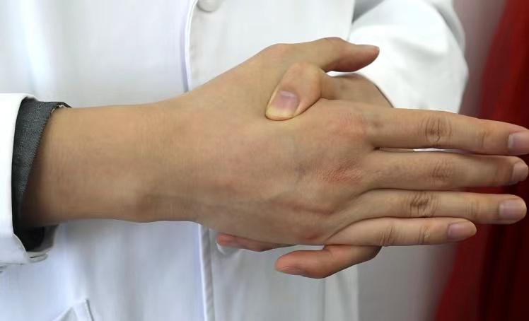 操作方法:在合谷穴采用拇指按揉法,或右手拇指按揉左手合谷,或左手拇指按揉右手合谷,拇指带动皮下组织按揉,与穴位皮肤之间不能摩擦,以酸胀感为宜。