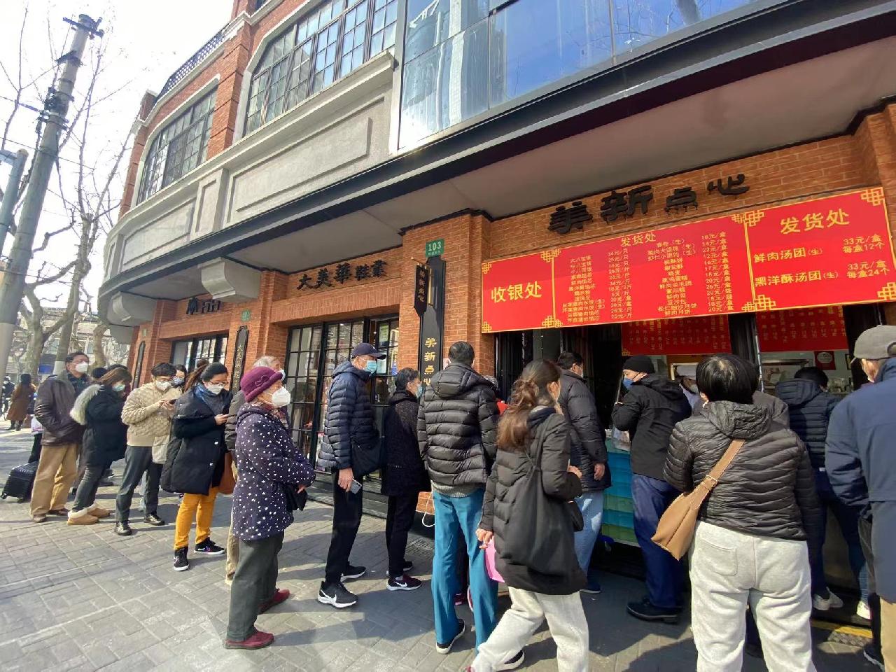 记者赶到美新点心时已经过了午饭的时间,当问道买汤团要排多久的时候,一位忙着打包装货的员工,看了一眼外面的队伍说,“现在买汤团至少要排一个半小时。”